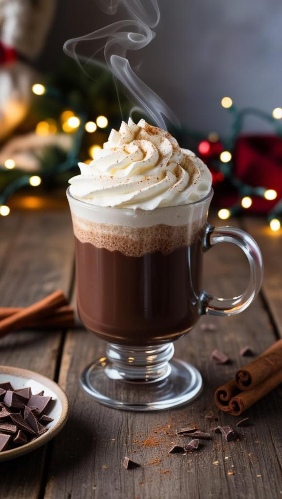 - Instructions: Make hot chocolate and add a pinch of cinnamon and cayenne. Top with whipped cream and garnish with chocolate shavings.