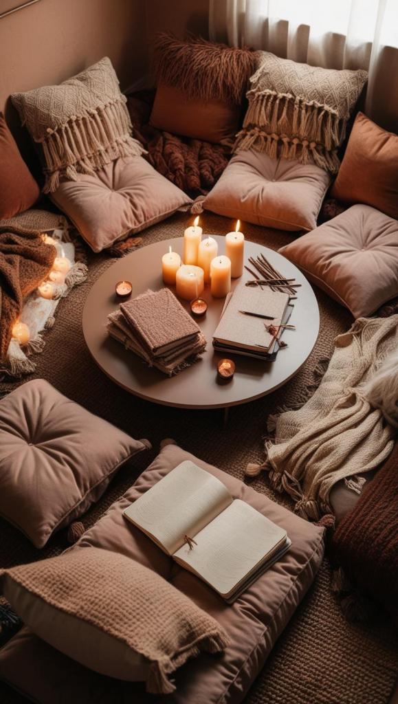 Creating a cozy atmosphere is key to setting the tone for a relaxing and reflective evening. Here’s how to make your space feel welcoming: