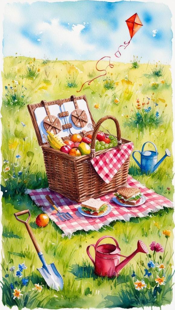 - A picnic set with a small blanket, reusable utensils, and a snack.