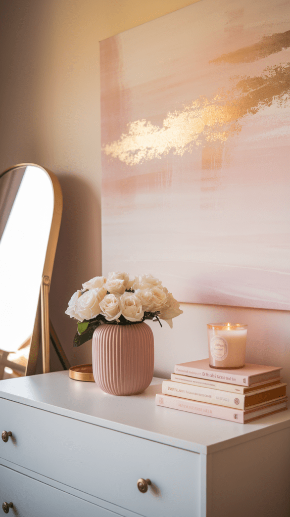 Wall art is a great way to incorporate blush tones without committing to large pieces of furniture or paint. Choose art that reflects your personal style while complementing the overall color palette.
