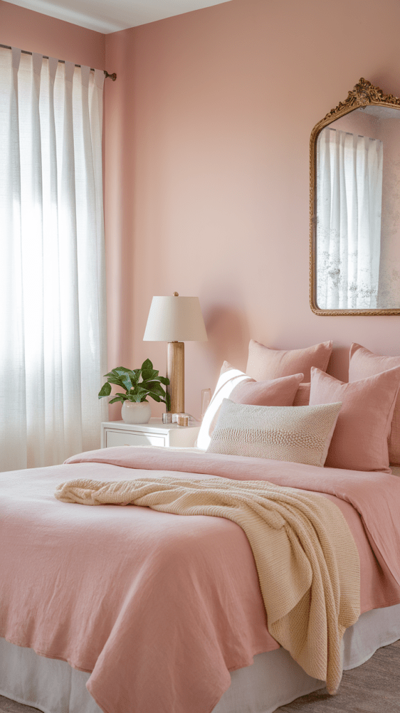 • Accent Wall: If painting the entire room feels overwhelming, opt for a blush accent wall behind your bed to serve as a focal point. This approach adds warmth without overpowering the space.