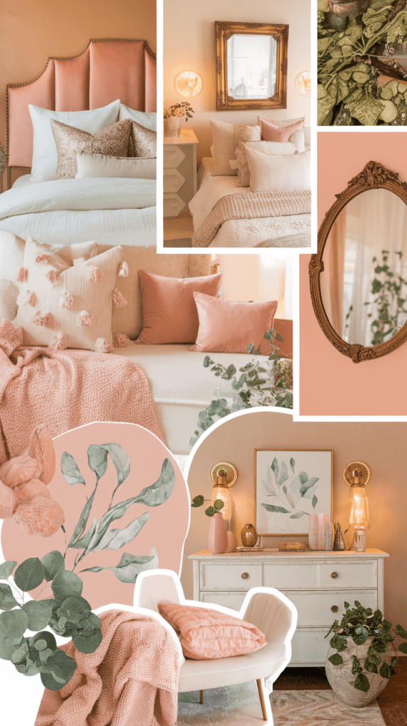 • Gallery Wall: Combine blush-toned artwork with vintage frames and mirrors to create an eclectic, curated gallery wall.