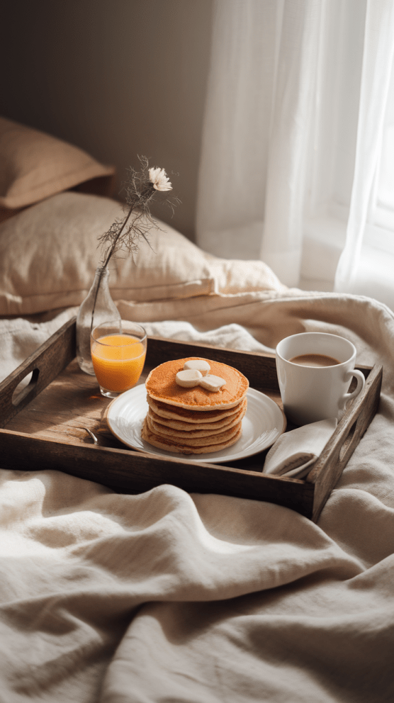 Nothing says “breakfast in bed” like a stack of warm, fluffy pancakes. This recipe is quick to make and pairs beautifully with honey butter and seasonal fruit.