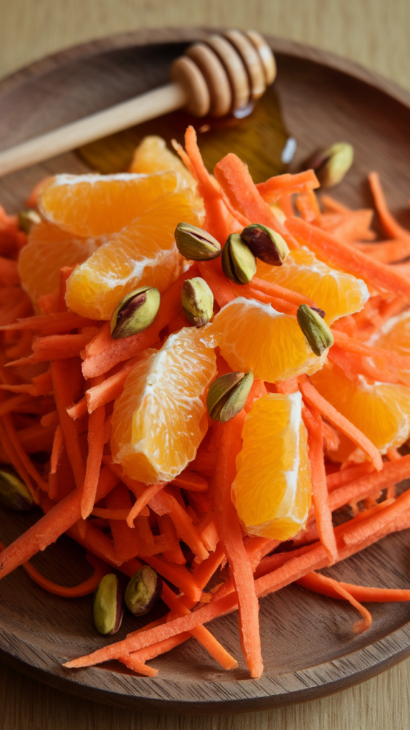 - Combine carrots, orange segments, and pistachios in a bowl.