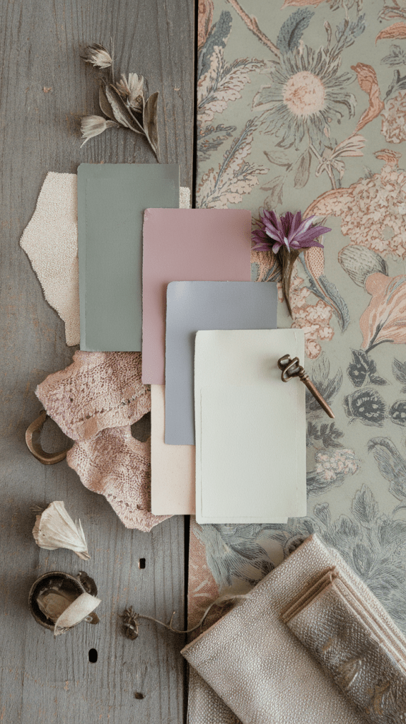 For a bolder look, consider using deeper tones like forest green, navy blue, or burgundy as accents—perhaps through a velvet armchair, patterned wallpaper, or a vintage quilt.