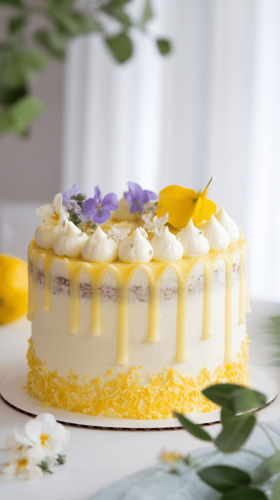 A tropical delight, this cake is perfect for summer birthdays. The light coconut sponge is paired with zesty lime frosting, creating a cake that’s both refreshing and flavorful. Garnish with toasted coconut flakes and fresh lime zest for a simple yet striking presentation.