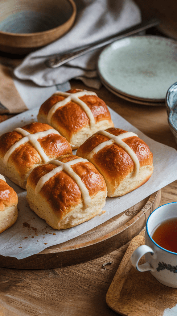 - Hot Cross Buns – Traditional spiced buns with a sweet icing cross.